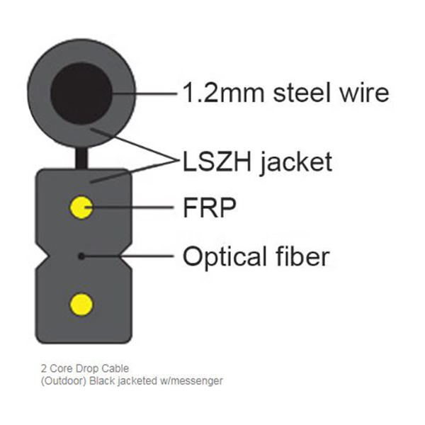 2 Core Outdoor FTTH Drop Cable with Hard Messenger