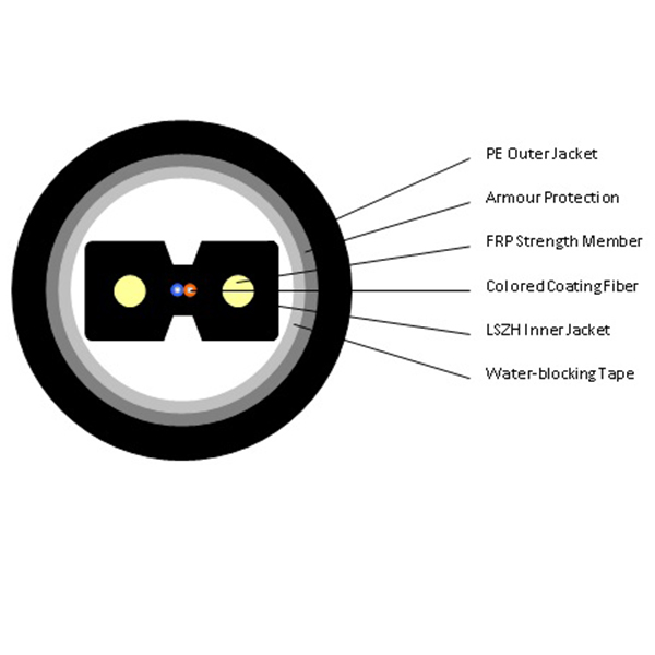 2 Core FTTH Drop Cable with Extra Protection of PE Jacket, Armour and Blocking Tape